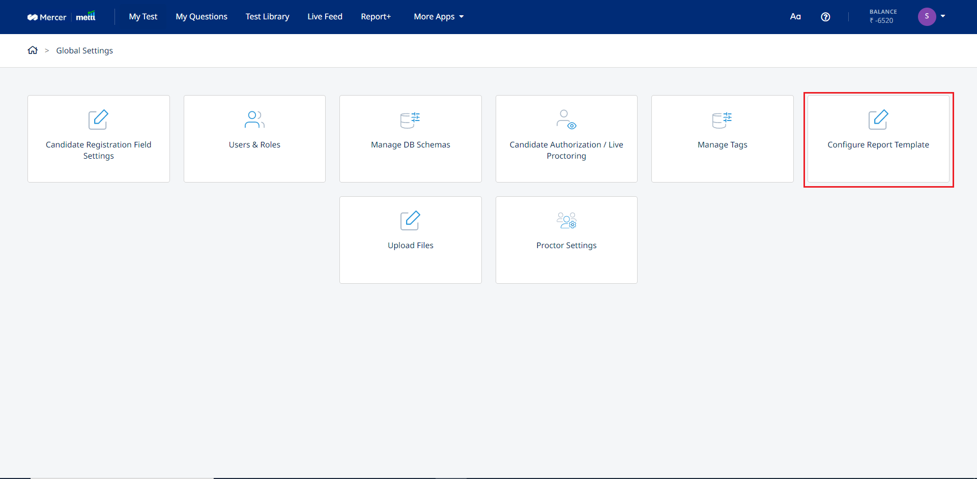 - Post clicking on global settings, the screen below will appear, click on "Configure Report Template".