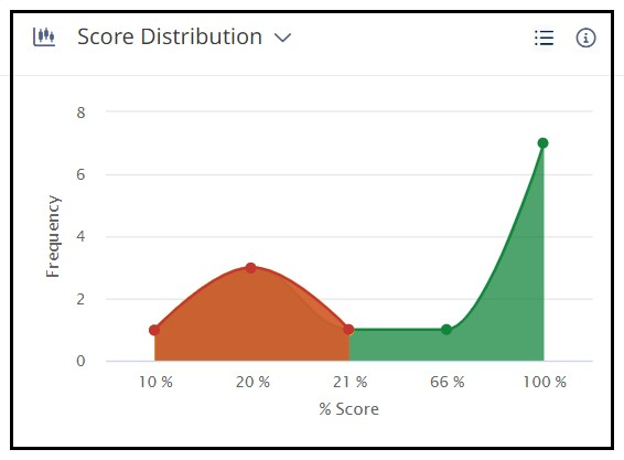 Test completion mode is represented by the color and shape of the point in the graph This is a graph which depicts frequency vs %age of score.