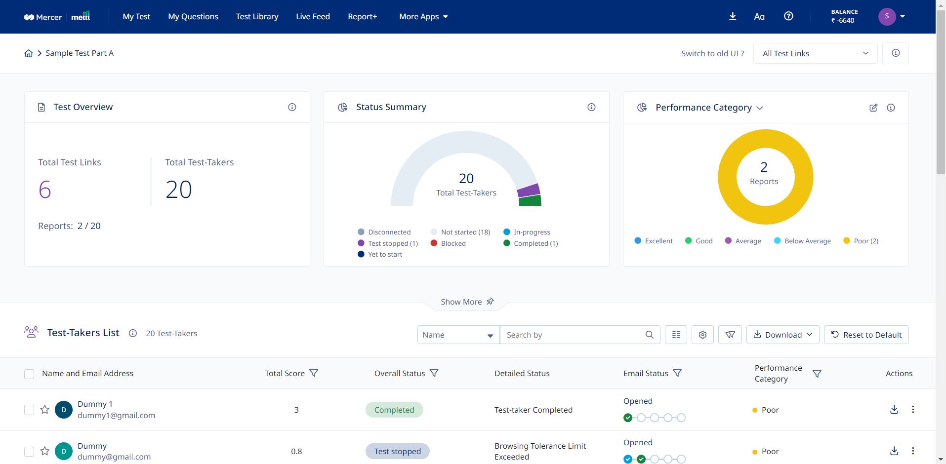 • Post clicking on the "Test Takers" tab, the following screen appears.